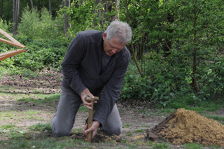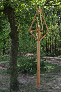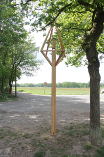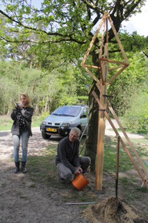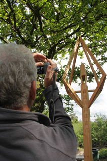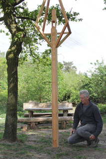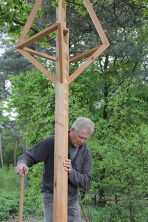 Bekijk grotere afbeelding Plaatsing van de Kapel van de Zetel van de Mens. zaterdag 3 mei is een mooie droge dag. We besluiten de kapel vandaag te plaatsen; mooi op tijd voor de fotograaf die morgen en overmorgen foto’s komt maken voor de catalogus. Kort beeldverslag: