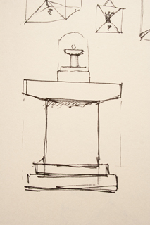 Dit kunstproject brengt me binnen enkele schetsjes bij mijn katholieke achtergrond. Op een of andere manier ben ik moeiteloos wraakzuchtig want het eerste idee is: “Ik ga een Altaar voor een Eikel maken!” Blijkbaar is er nog altijd iets te vereffenen. De dwingelandij van de kerk heeft mijn verzet al opgeroepen voordat dat ik het woord kon schrijven.
