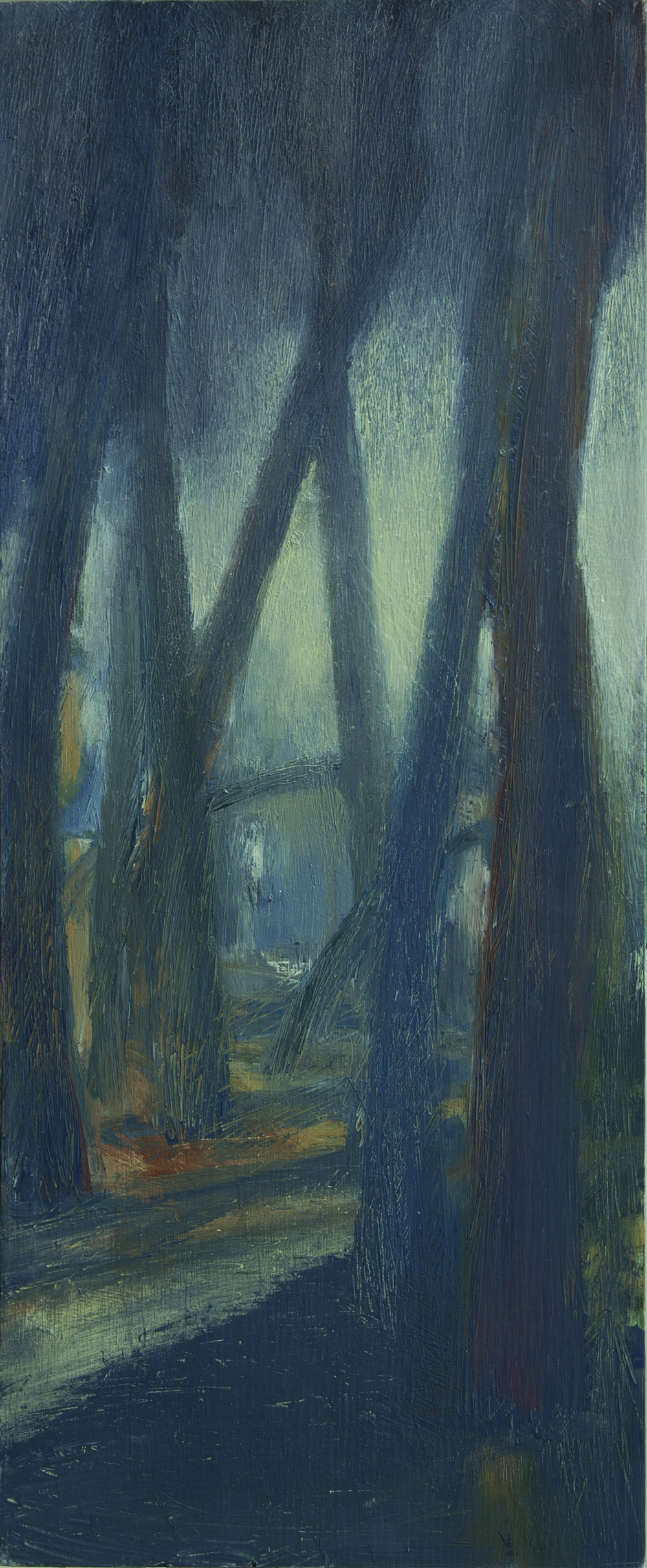 El camí de l’aigua -maanlicht in het bos- I olieverf op paneel I 27 x 64.5 cm
