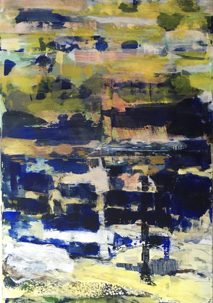 Hoog water aan de Waal, olieverf en acryl op doek 70×100