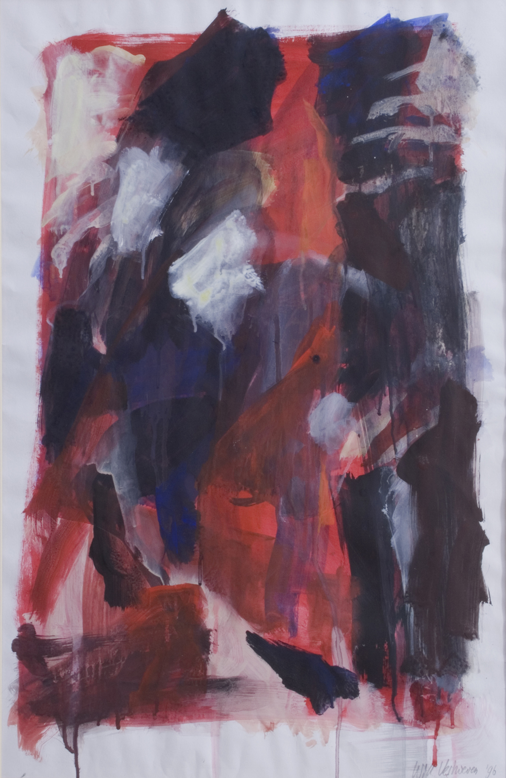 Rode zebrahuid | acryl op papier | 50 x 65 cm