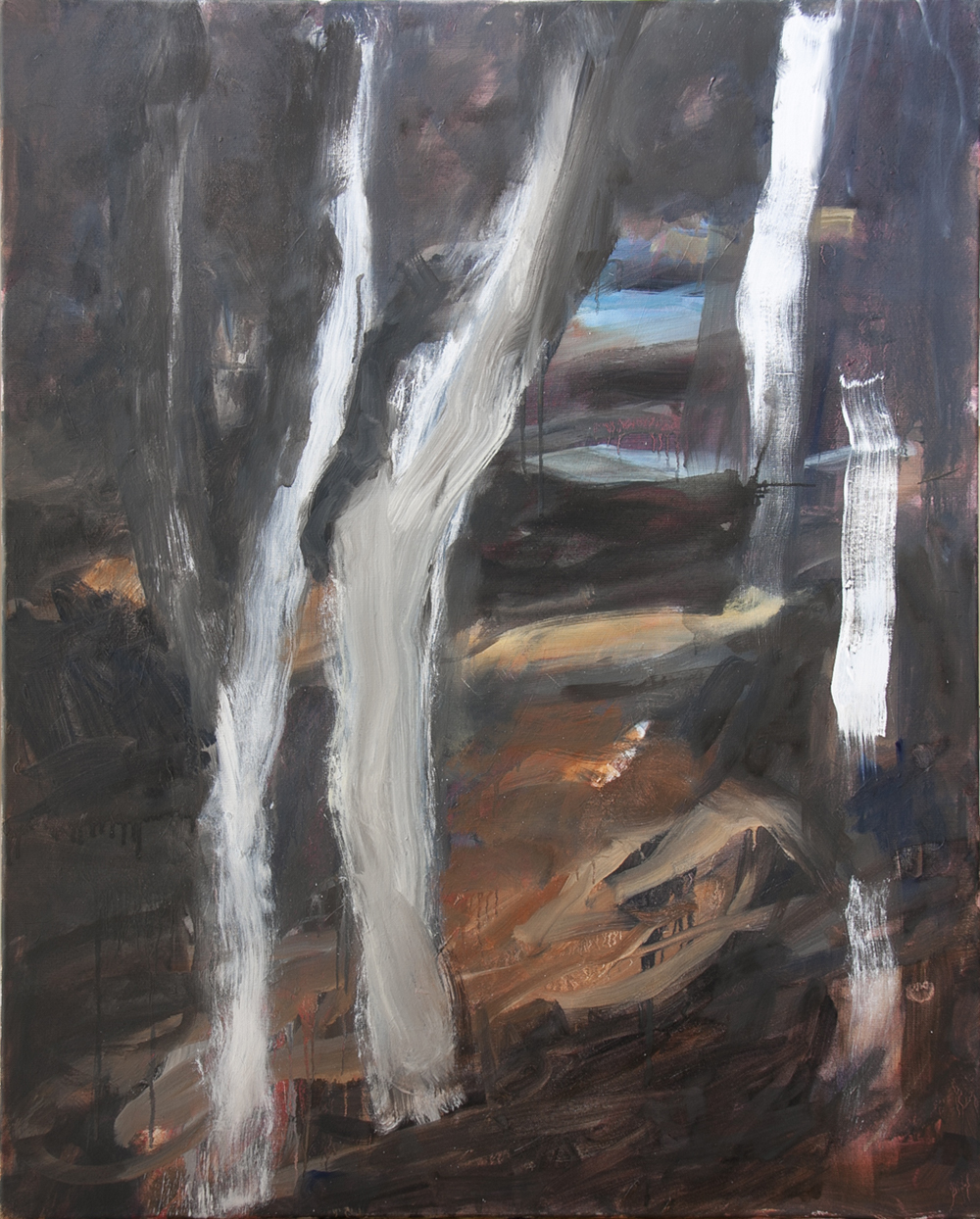 Zijpad -witte bomen- | 80 x100 cm | olieverf op doek